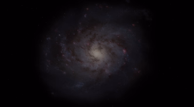 The Triangulum galaxy as seen from above its galactic disk. Spiral arms and central bulge can be seen. The areas with glowing red gas indicates the formation of new stars.