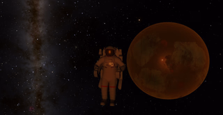 *Egeria comes from Roman mythology. She was a water nymph, and exchanged wisdom and knowledge for water and milk. The name was chosen because the crew was giving their time, energy and risk to learn more about the Proxima [[File:JT.jpg|thumb|left|John Timwall in an extravehicular unit orbiting Proxima 4]]Centauri. |