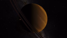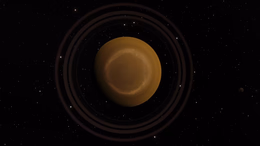 Another interesting feature of Taranis is its rings, that although not as impressive as Saturn’s are still a sight to behold. They are brownish in color and are composed of various sized rocks and ice. The rings most likely came from the remnants of a moon or large asteroid that collided with the planet a long time ago, but it is also possible that material ejected from Esus’ volcanoes contributed to their formation. Like Saturn’s, Taranis rings are classified by letters. There are four main rings, from widest to narrowest: A, B, C and D. Of those, A, B and C are denser while the innermost D ring is very faint. B and C are subdivided in B.1 (wide) and B.2 (narrow) for the first and C.1, C.2 and C.3 for the latter. The rings are separated by empty gaps, the widest being the A-C gap and the narrowest the A-B gap. Smaller gaps also exist between the C and B sub-rings.