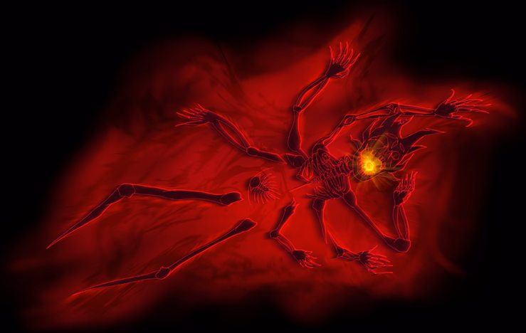 Sachitel's limbs were scorched and singed upon contact with the otherworldly membrane. Recoiling in a sort of fear, she saw her hand melt before her eyes. Her ebbing, bony hand gave way to her Aeternal essence. Moving back to mend her wrist, The first Mother stared at the membrane with an estranged curiosity. Her face contorted to a contempt grimace as she scolded the mass in front of her. How could she have received such harm from a mindless creature? Left hand springing back to life, Sachitel's attention shifted back to the chimera's skull. She would never pass on the opportunity to take its Aeternal Energy, much like how she wrung dry a previous firmament.