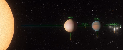 - Pakaun: It a gas giant, most of the economy of this world is based on chemistry extraction and minerals from its moons. Orbital stations here are big and efficient. The total population of this giant and is moons is 6 Billion