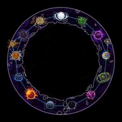 The Thirteen Realms are all arranged in a spiral-like pattern, known as the "Typhonia-Circulacium." Each individual realm is separated by narrow voids in-between each member, while at the center of the spiral, lies a vast void, containing sparsely located energies leaking from each of the Thirteen Realms that surround. These energies often react with that of the Thavmatic Matter and energies already contained within the void,creating strange new forces, beings, and even planes, though they often remain extant for only brief windows of time, before ultimately having their energies disperse into the void.