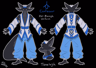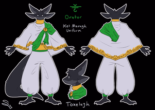The clergy of Ket Maragh is made up entirely of unattuned toxelugh, as one of the foundational principles of the religion is that Lugha—the Great Beast, Her name forbidden to be used to refer to Her—grants only one use to each individual. The Attuned toxelugh are the Beast's arms and claws—Ae Lugh literally mean's Claws of Lugh (altered form to not disrespect Her name). The unattuned have a wider variety of roles, able to function as the lifeblood that keeps the archipelago thriving or the other organs. Those who become Ketem priests are said to be the Beast's eyes, ears, nose and tongue, the sensory organs and that which allows Her to speak. Their psychic connections allow them, through ritual, to allegedly communicate with the deceased Beast Herself.