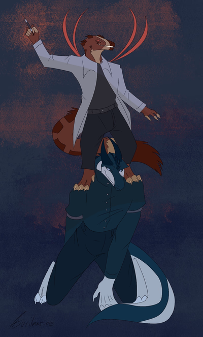 Illian Xion is an Ubirajara Saurian from Veneria, Moshkho is was the former doctor and scientist working for the Outfit, but left after repeated disagreements with his Boss, Regulus Edgeworth.