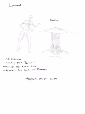 | Loresavts are mechanical general-purpose humanoid machines created by the Phaethon System. Created to protect Eos from degradation and tampering, Loresavts exhibit complex problem-solving abilities suggesting intelligence. This species is elusive and intelligently resists attempts at study, inadvertently giving researchers information. They have an innate sense of their surroundings despite having no visible sensory organs. This includes the positions of fellow Loresavt. They most likely reproduce by manually constructing copies of themselves. Whether this constitutes reproduction is a hotly contested issue. Another unique characteristic is their composition. They are made up of trillions of gears. Within their chest cavity lies an immensely complicated analog computer that handles problem-solving through unknown means.