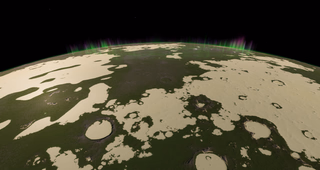 Verrune is older than Earth at 6.669 billion years. While it is the largest terrestrial planet in its system, Verrune is only a moderately sized planet with a diameter of 9660 km. Gravity at Verrune's surface is ~7.6 m/s (77% of Earth's). The planet's semimajor axis is 1.25 AU. One Verran year is 1.37 Earth years and has a rotational period of 17 and-a-half hours. While it does have an atmosphere, it is extremely thin at only 0.0036 atm. The atmosphere is composed primarily of helium and chlorine, giving it a green hue.