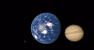 Kelliptos's second largest moon, called Loa, is of particular scientific interest. This is due to its unique combination of chemical, geologic, and orbital factors that, together, are on the verge of allowing for abiogenesis to occur in the next 15 thousand years. Approaching 7 billion years in age, this will occur far later in its life-cycle than all previous abiogenesis events that have been observed. This will put the Iyronian system in the extremely rare category of having had 2 abiogenesis events. While currently an oceanic planet, intense geologic activity due to its proximity to Kelliptos will cause land to arise within the next few millennia. With Iyro slowly increasing in brightness over the next few billion years, its atmosphere, comprised largely of water vapor and carbon dioxide, will increase in thickness enough that, with its magnetic field, should be nough to shield its surface from Kelliptan radiation. This will create the perfect conditions for even the most complex life on Loa's surface to arise. Interestingly, Loa is the largest rocky body in the entire Iyronian system.