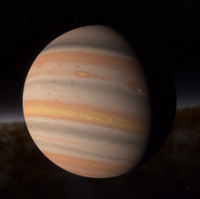 The first planet from Cthnos, Heaphance is a hot J-class world. Despite being only the second most massive of the Cthnoite gas giants, its proximity to Cthnos renders Heaphance the largest planet in the Pantheus System. Heaphance is naturally a dark lavender color, but the thermal radiation it emits makes it appear red and yellow.