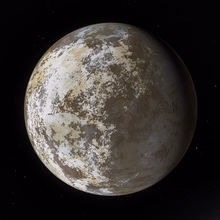 Sauri (/saʊriː/, SOWR-ee) is the third moon of Geltrest, and the only rounded moon of the Geltrester system. Sauri is a warm D-class moon of .06 Earth masses, with a substantial mantel around an metallic core. Sauri is tidally locked to Geltrest. The surface of Sauri is split between igneous mares and geography on its nearside and the vast Eddenter Desert on its far side. The moon has a thin, tmosphere of almost pure (99.8%) sulfur dioxide with trace amounts of Octane gas.